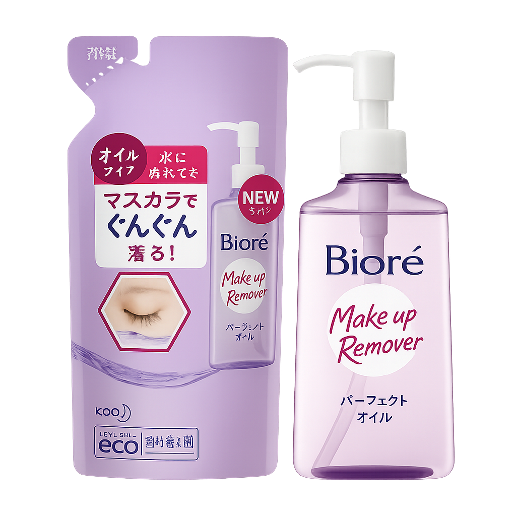 Biore Makeup Remover Perfect Oil – Yaponiyaning eng mashhur makiyaj tozalovchi moylaridan biri. Odatdagi makiyajni ham, suvga chidamli tush va lab bo‘yoqlarini ham tez va samarali tarzda tozalaydi. Yog‘li tuzilmasiga qaramay, terida yopishqoq yoki og‘irlik hissini qoldirmaydi.