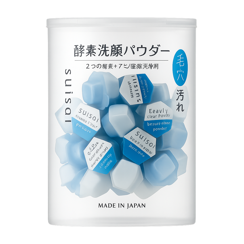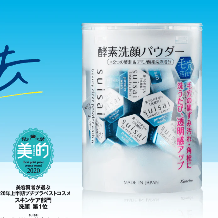 Kanebo Suisai Beauty Clear Powder – Yaponiyada eng mashhur yuz tozalovchi kukunlardan biri. Kichkina kapsulalarga joylangan kukun suv bilan aralashtirilganda yumshoq ko‘pik hosil qiladi va yuzni chuqur tozalaydi. Tarkibida proteaza va lipaza fermentlari bo‘lib, ular ortiqcha yog‘ni eritadi, teshiklarni tozalaydi va teri yuzasini silliqlashtiradi.